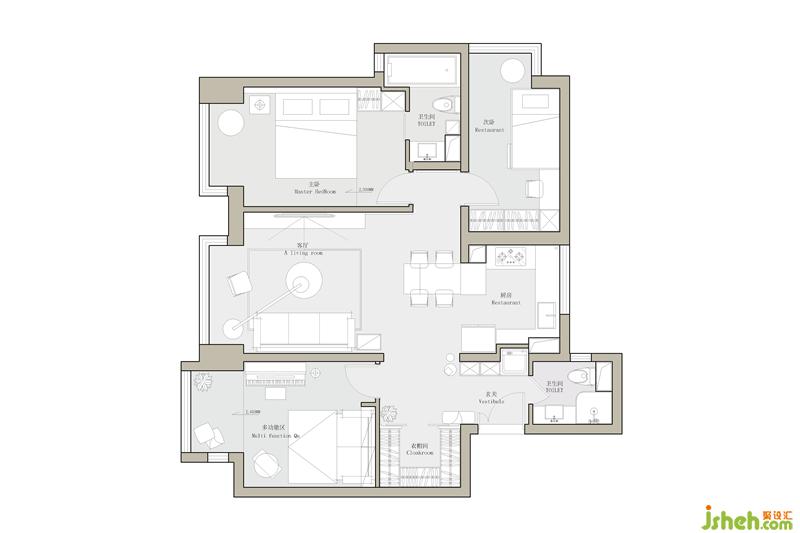原戶(hù)型比較方正,最大的缺點(diǎn)就是主臥的收納不好解決,同時(shí)餐廳的位置也比較尷尬,入戶(hù)沒(méi)有鞋柜,每個(gè)空間的利用不是很高。