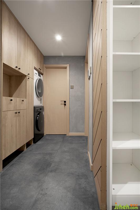 入戶(hù)的鞋帽柜設(shè)計(jì)成了兩部分,左邊的放鞋子,右側(cè)的掛衣物,洗衣機(jī)完美的嵌入,大家應(yīng)該也發(fā)現(xiàn)了還缺個(gè)換鞋凳,對(duì)的,它還在來(lái)的路上,買(mǎi)的比較晚沒(méi)趕上我們的拍攝。