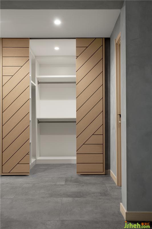 為了使衣帽間的空間利用率提高,故而裝修設(shè)計(jì)了推拉門(mén),雖說(shuō)是推拉門(mén),但是也是一個(gè)裝飾,倆個(gè)門(mén)合上的時(shí)候原木質(zhì)感加上幾何黑線(xiàn),一種現(xiàn)代元素和自然元素結(jié)合的美感就出來(lái)了。