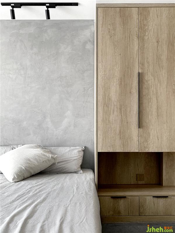 每一個(gè)物品都有它自己獨(dú)特的魅力,結(jié)合到一起就有不一樣的化學(xué)反應(yīng),比如床頭這個(gè)水泥燈罩的吊燈,和地面的原木地板加上床品的布藝質(zhì)感,直接襯托了它的精致和美感。