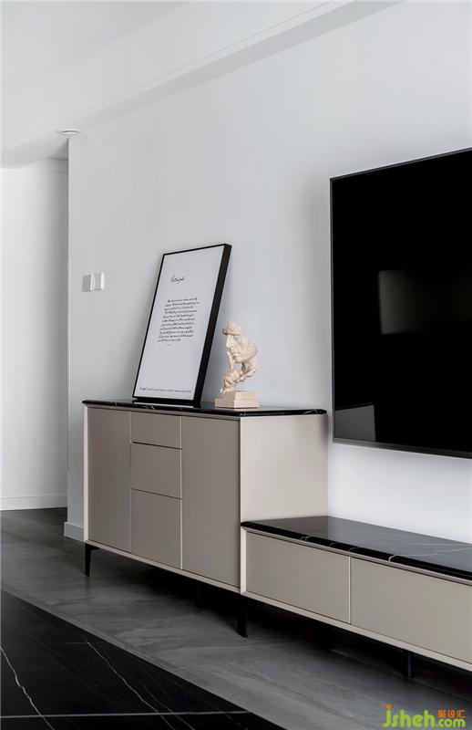 黑白配以暖灰,完美的達到了原來所預期的效果,簡單大方。顏色也大氣舒適,而且這個風格是不會過時的?,F(xiàn)在空缺的陽臺空間,后期可以隨時添加喝茶的休閑椅和茶桌。