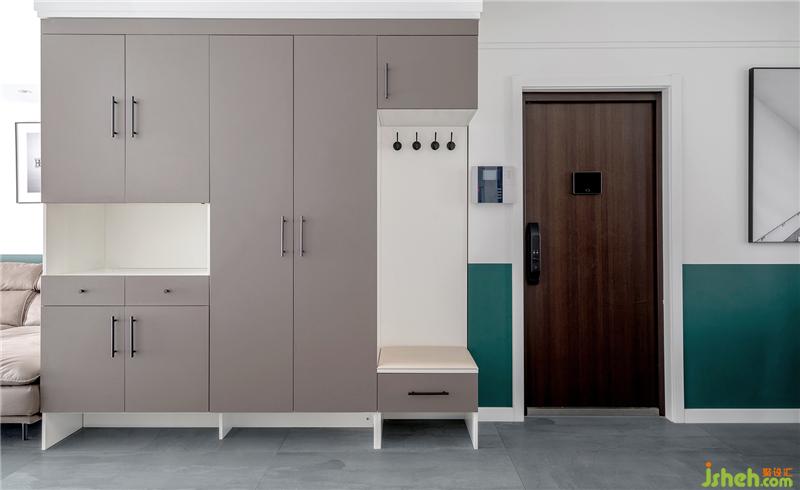 門廳的多功能柜,現(xiàn)在是集換鞋凳,收納,保潔柜,換衣為一體的形式。承擔了家里很大一部分的收納。鞋柜下方的開放格,不僅僅是為了放鞋子,同時還為掃地機器人預(yù)留了空間。