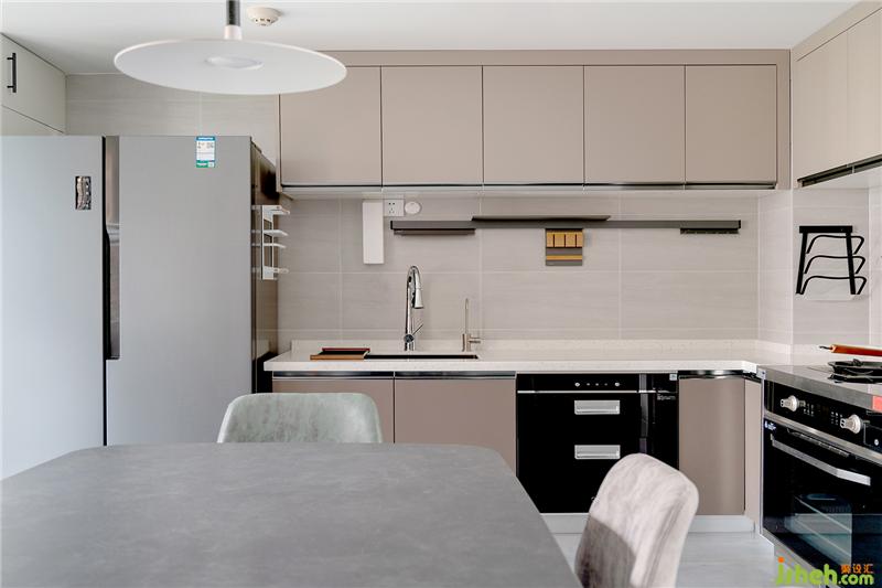 廚房采用了集成灶,0阻礙的頂部空間,可以實現(xiàn)完整的吊柜來儲物。同時集成灶的吸力也是非常大,就算是開放式廚房,家里平時燒飯,也不會有油煙味。
