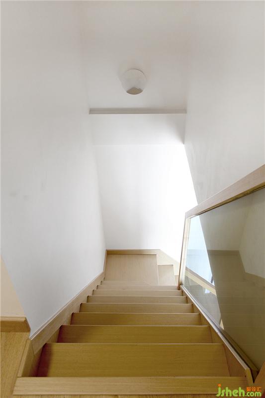 樓梯靠墻位置安裝了照明燈,以免夜晚上下樓臺(tái)階踩空,減少安全隱患。臺(tái)階與扶手間用透明玻璃來銜接,使光線不受遮擋也能增加樓梯的穩(wěn)定性。