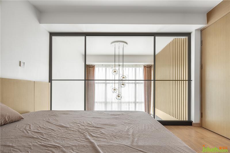 二層主臥與客廳之間安裝了玻璃推拉門,起到了隔音作用,不休息時(shí)可拉開推拉門,保證屋內(nèi)的空氣流通。