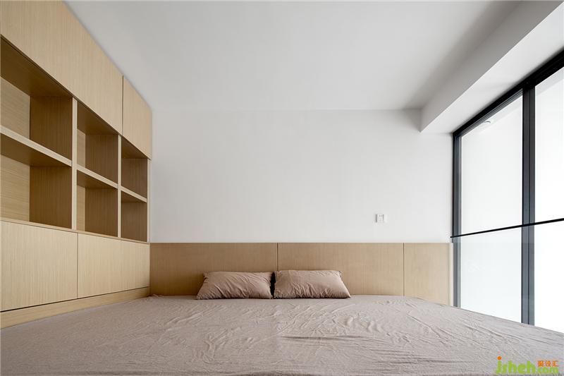地臺(tái)靠墻部分安裝了木飾面板,起到了床頭作用,日常使用不必依靠到墻體上,避免弄臟墻面與衣物。