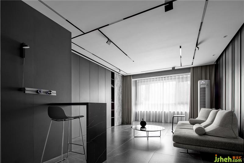 客廳為無(wú)主燈設(shè)計(jì),頂部安裝嵌入式磁吸燈軌,可以自由組合燈條,北京室內(nèi)設(shè)計(jì)師讓屋內(nèi)的光線分布更均勻,未來(lái)感十足。每片區(qū)域燈光可獨(dú)立控制,為空間帶來(lái)更多靈動(dòng)的場(chǎng)景,滿足多變,為屋主營(yíng)造不同時(shí)段的流動(dòng)光線氛圍。