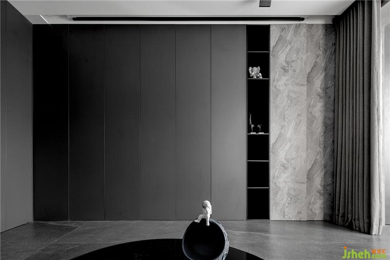 整個(gè)空間無(wú)色處理,像是她爽朗的性格,從不拖泥帶水。十多種灰色材質(zhì)的碰撞拼接,和黑白重色的配合,足以帶來(lái)品味不凡的藝術(shù)效果。無(wú)主燈設(shè)計(jì),可切換環(huán)境區(qū)域的流動(dòng)光線,每一處都留下令人駐足的光影。摒棄傳統(tǒng)木紋材質(zhì),硬朗的質(zhì)感讓整個(gè)空間多了一份超時(shí)空的未來(lái)感。如同遨游在月球之中。