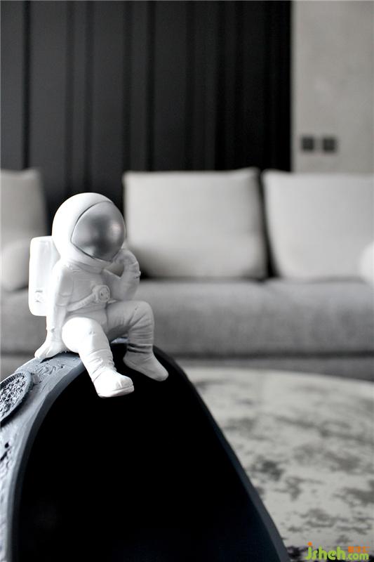 淺灰色沙發(fā)與邊幾的加入豐富了空間的層次,簡(jiǎn)潔的同時(shí)打破了客廳區(qū)域的沉悶,使視覺上更加輕靈。月球圖案的茶幾猶如天空中的明月一般光彩皎潔,讓生活增添幾分藝術(shù)效果。