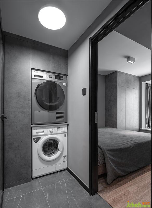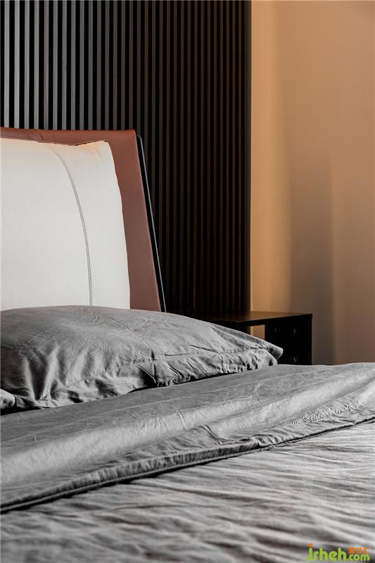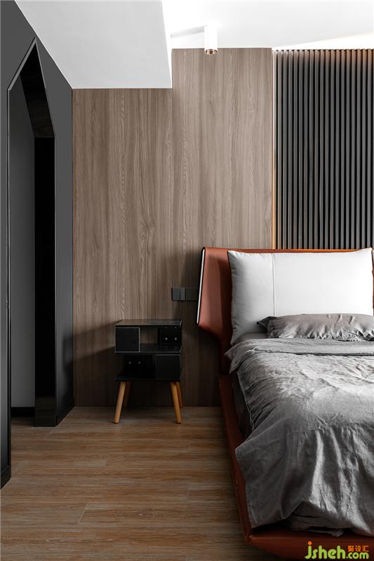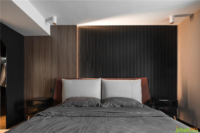 次臥滿足臨時住人與收納功能,放眼望去,滿眼灰色,處處充斥著高級感。