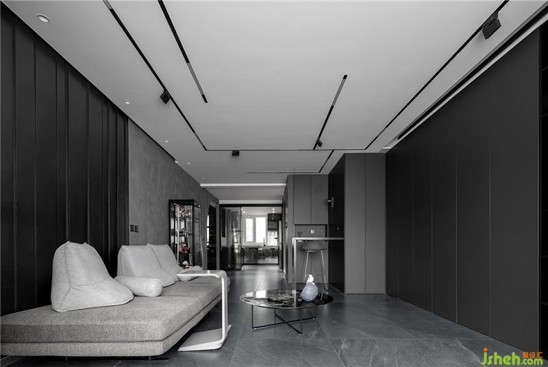 客廳為無(wú)主燈設(shè)計(jì),頂部安裝嵌入式磁吸燈軌,可以自由組合燈條,讓屋內(nèi)的光線分布更均勻,未來(lái)感十足。每片區(qū)域燈光可獨(dú)立控制,為空間帶來(lái)更多靈動(dòng)的場(chǎng)景,滿足多變,為屋主營(yíng)造不同時(shí)段的流動(dòng)光線氛圍。