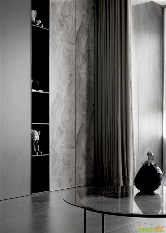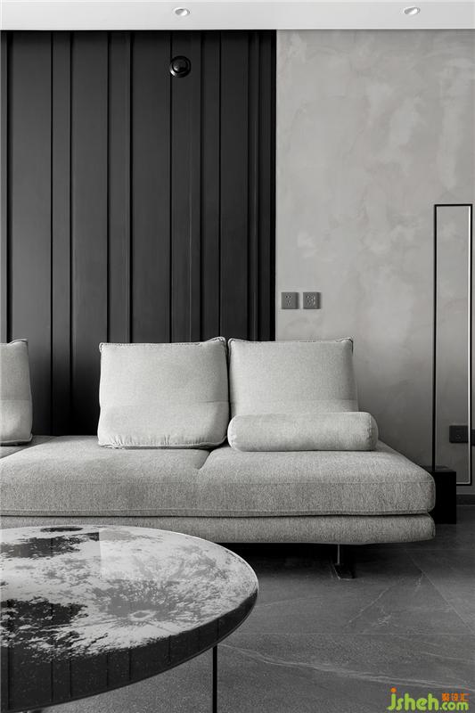 整個(gè)空間無(wú)色處理,像是她爽朗的性格,從不拖泥帶水。十多種灰色材質(zhì)的碰撞拼接,和黑白重色的配合,足以帶來(lái)品味不凡的藝術(shù)效果。無(wú)主燈設(shè)計(jì),可切換環(huán)境區(qū)域的流動(dòng)光線,每一處都留下令人駐足的光影。摒棄傳統(tǒng)木紋材質(zhì),硬朗的質(zhì)感讓整個(gè)空間多了一份超時(shí)空的未來(lái)感。如同遨游在月球之中。