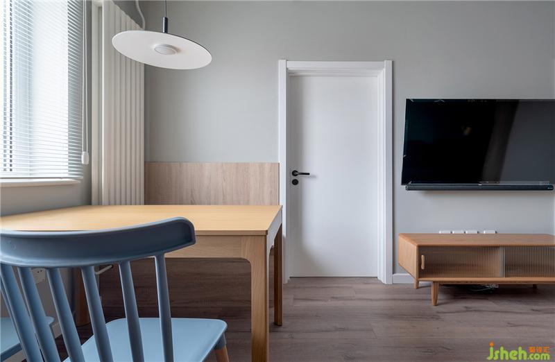 餐廳窗戶選用純白的百葉簾,百葉簾的的自由度很高,可以調(diào)節(jié)葉片角度控制光線的射入,能夠給室內(nèi)帶來(lái)極具線條美感的光影效果,也易于拆卸清洗。