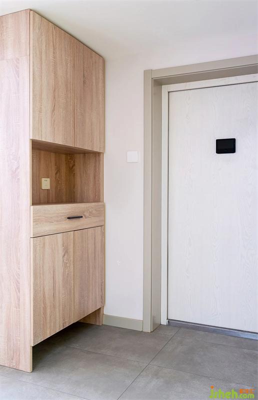 鞋柜格局的經(jīng)典樣式,有一點(diǎn)需要注意的是,現(xiàn)在一般防盜門的鎖智能多一些,但往往還需要充電,所以一定要在附近預(yù)留電位。鞋柜要是離得比較近,就可以在鞋柜中間開放格里預(yù)留,平時也可以用作其它。