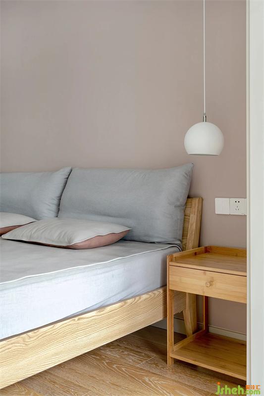背景墻刷了暖灰色漆,再配合原木和灰色亞麻布藝,暖到心里了。