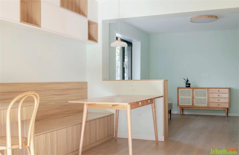 臥室門跟儲物柜結(jié)合做了一體的隱形門,空間更加完整統(tǒng)一。