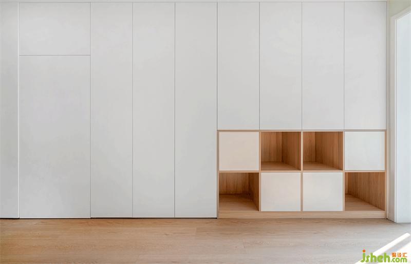 隱形門關(guān)上以后的狀態(tài),大面積的白色柜門能夠更好的反射光源。
