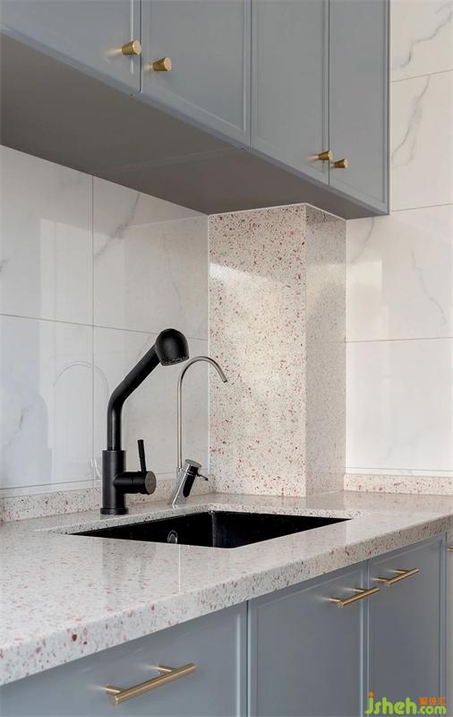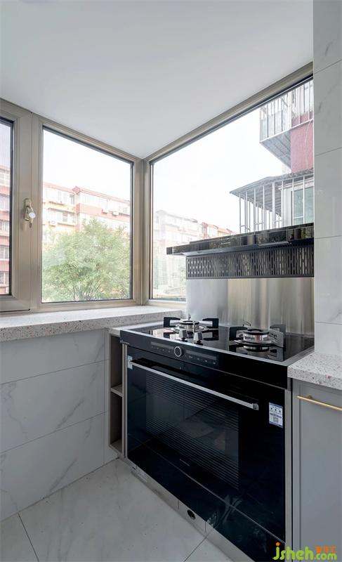 廚房增加了儲物空間,裝修設(shè)計(jì)利用陽臺的空間,把灶臺和洗衣機(jī)都放了進(jìn)來。窗戶做了外飄窗,擴(kuò)大了炒菜區(qū)域的操作范圍。