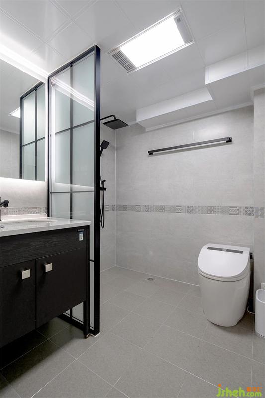 淋浴區(qū)預(yù)留了足夠的空間,供媽媽給兩個(gè)孩子洗澡的操作空間?;⒉AЦ魯嗪兔砑芏冀y(tǒng)一用色。