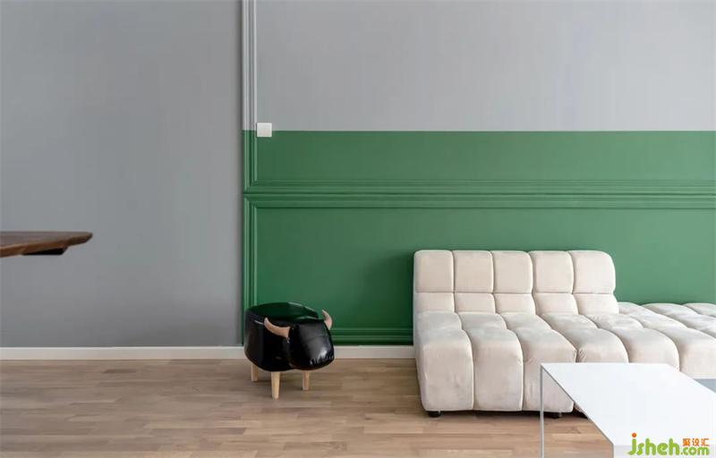 電視墻是組合柜的形式,灰色開放格搭配白色儲(chǔ)物柜,彰顯十足的復(fù)古風(fēng)味。柜門表面還做造型提升整體的層次感,底部在配上灰色石材石基,增添一絲別樣的韻味。