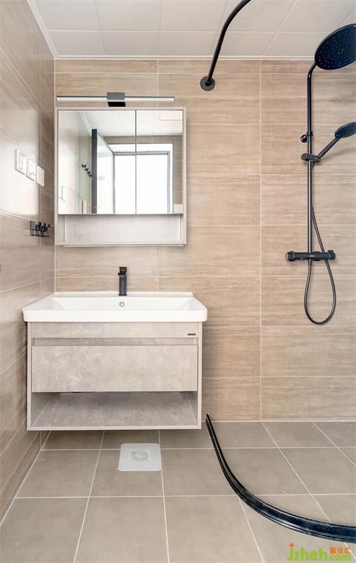 淋浴空間采用浴簾做遮擋的形式,讓使用方便,空間更加的靈活。