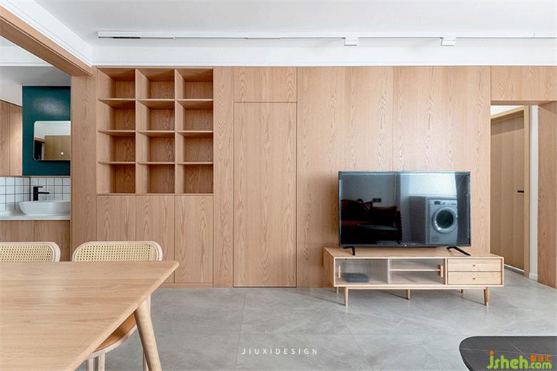 沙發(fā)背景墻相對簡潔,餐柜餐桌椅選了接近電視背景墻一樣的用色,保證空間的材質(zhì)盡裝修可能的統(tǒng)一。