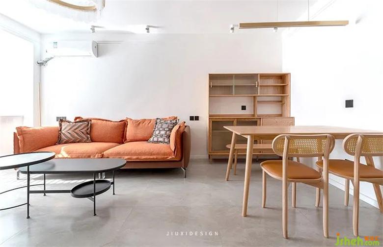 橙色給人一種積極向上有活力的氛圍裝修感,讓寧靜的空間增強(qiáng)了視覺感受。
