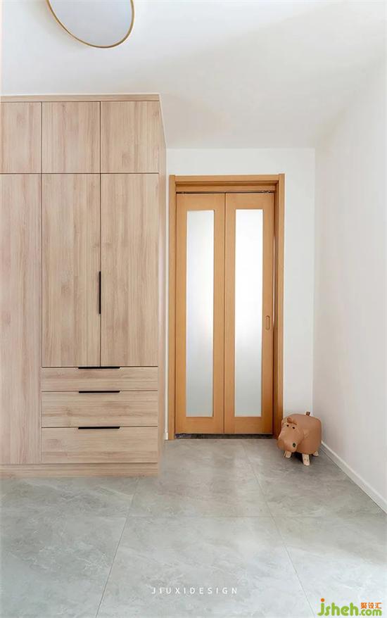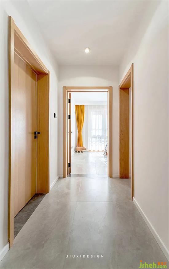 走廊空間干凈清爽,視裝修線通透。原木色的門保證隱私的同時(shí),溫暖了整個(gè)走廊空間。
