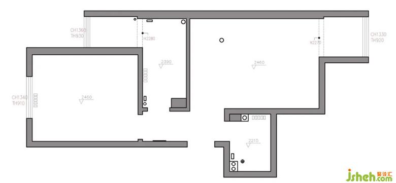 原戶型的承重結(jié)構(gòu)比較多,不過(guò)好在中間廚房裝修設(shè)計(jì)位置的墻體是可拆改的,這就為設(shè)計(jì)師的改造思路提供了方向。衛(wèi)生間空間有限,無(wú)法實(shí)現(xiàn)干濕分區(qū)。大轉(zhuǎn)角的廚房,空間不好利用容易產(chǎn)生浪費(fèi)的情況。