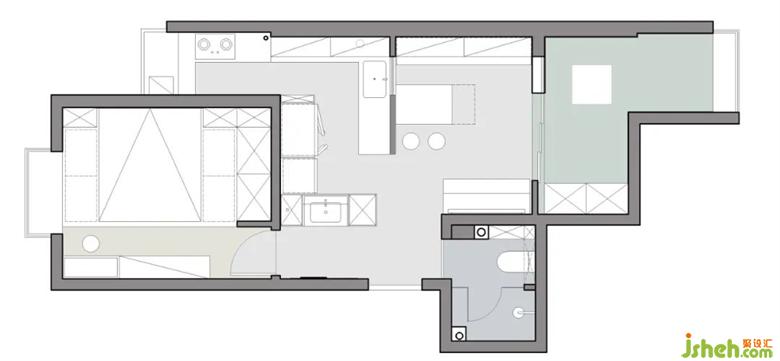 3.通過(guò)拆除廚房隔斷墻,對(duì)空間進(jìn)行了重新規(guī)劃。增加了家政柜和洗漱區(qū),不僅解決了衛(wèi)生間干濕分離的問(wèn)題,也提升了空間實(shí)用性和利用率。