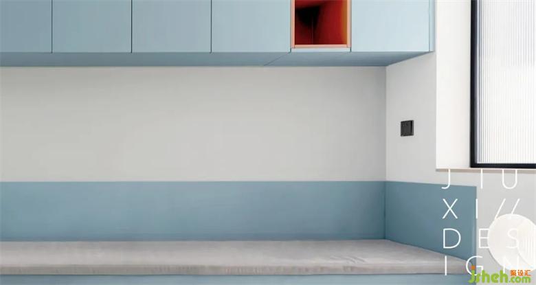 瓷磚選擇的是馬卡龍色長(zhǎng)條磚,規(guī)格為100*300mm進(jìn)行組合鋪貼。這樣的搭配不僅避免了單調(diào),還盡顯空間層次。