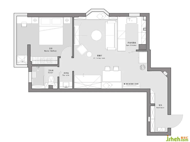 2.廚房設(shè)計成半開放式,這樣和客餐廳在視覺上,就聯(lián)系到一起了。