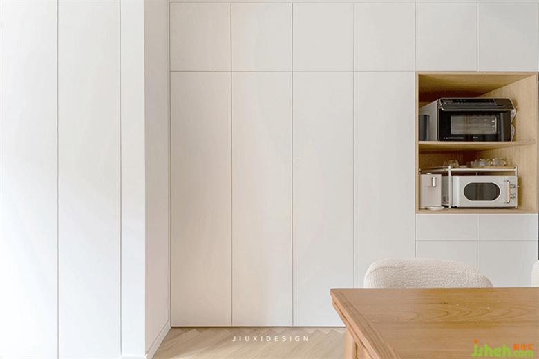 1.首先改造的就是廚衛(wèi),呈現(xiàn)開放式布局,會(huì)讓入戶空間會(huì)顯得寬闊一些。衛(wèi)生間是把水盆移了出來(lái),原來(lái)主臥門的方向改到了客廳一側(cè)。