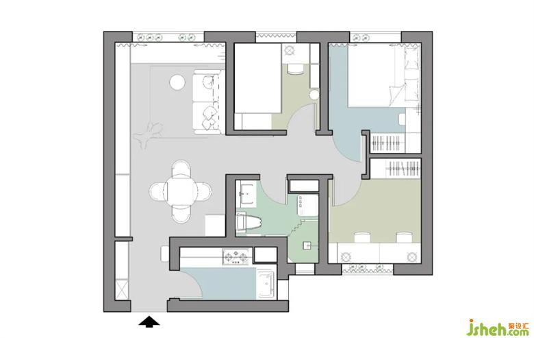 這是一套三房?jī)蓮d的戶型格局,常住4口人中,包括了夫妻兩人,1歲的孩子和照顧的阿姨。