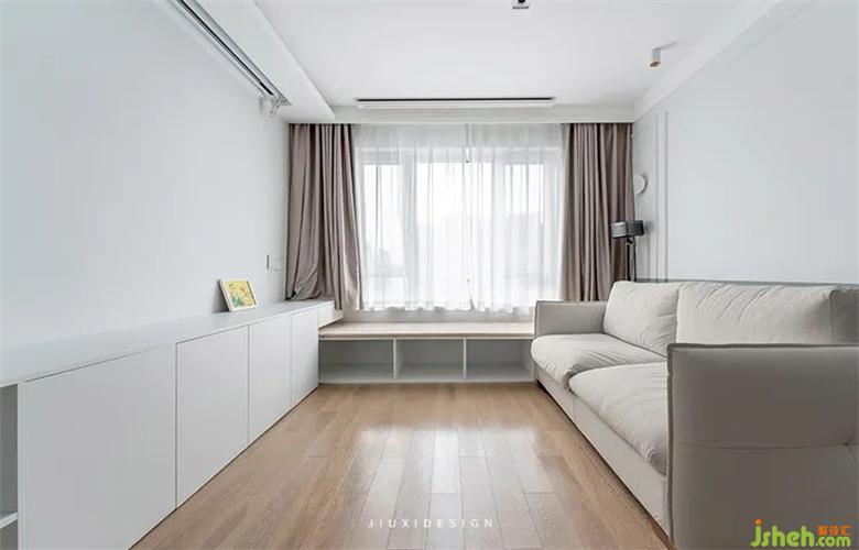 2.窗臺(tái)下增加卡座柜,實(shí)現(xiàn)飄窗的效果。
