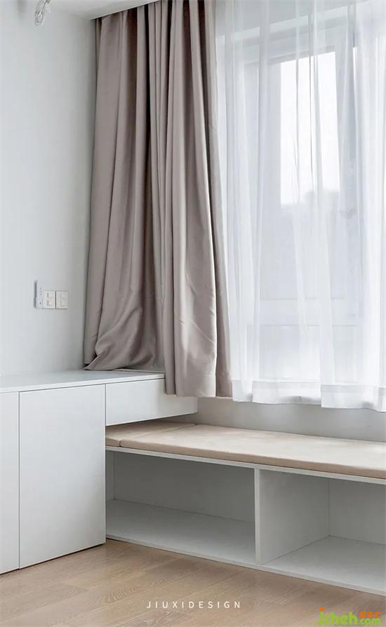 窗前裝修設(shè)計(jì)了與電視柜相嵌入的窗榻,承上啟下的交叉的結(jié)構(gòu),簡(jiǎn)單又利落。在愜意的午后,也可以在窗榻下給孩子閱讀繪本。