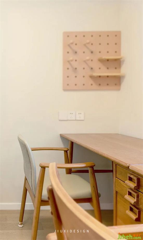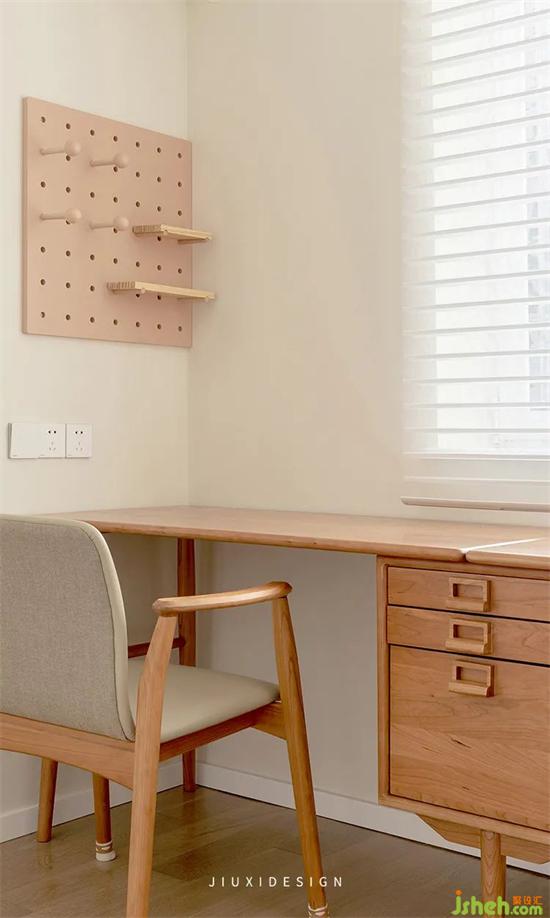 陽(yáng)光透過(guò)百葉窗,灑在書的篇章之上,自由與想象,裝修設(shè)計(jì)給內(nèi)心世界創(chuàng)造一個(gè)棲居的場(chǎng)所。書房的布置以簡(jiǎn)潔舒適為主,墻面的杏子灰加上原木色的洞洞板,別有一番風(fēng)味。每件小的裝飾品,都是結(jié)合家里的整體色調(diào)去選擇,柔和而溫暖。