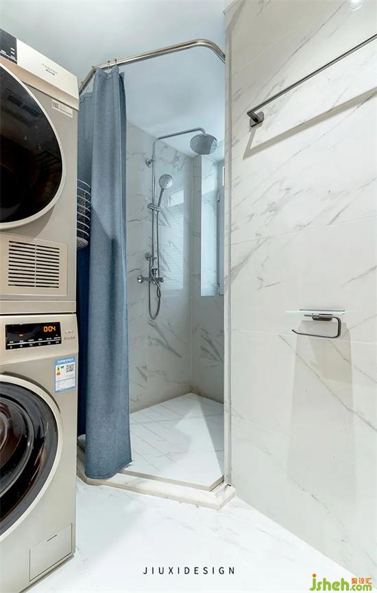 為了可以放下烘干機(jī)和更好的淋浴體驗(yàn),裝修設(shè)計(jì)把原有的太陽(yáng)能熱水器舍棄,改成了燃?xì)鉄崴?。小小改?dòng)卻是屋主全家特別需要的功能,以后洗澡也不用邊洗邊觀察熱度容量了。