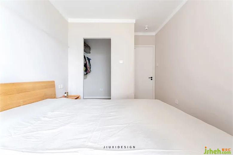 在臥室劃出一個(gè)衣帽間,來(lái)增加整體臥房的儲(chǔ)物。原木床體與外部的木色有了呼應(yīng),裝修讓家變得統(tǒng)一舒適。