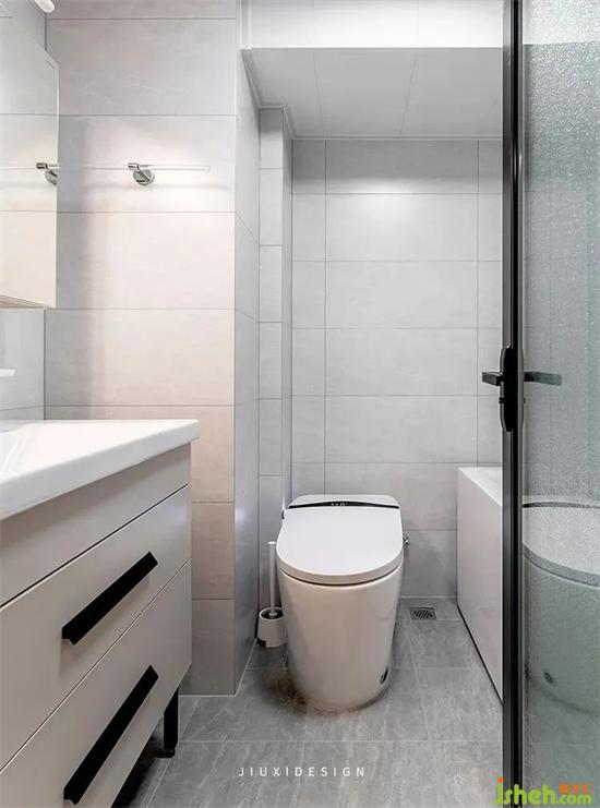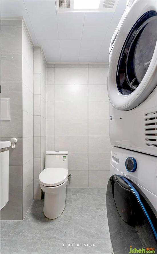 一層衛(wèi)生間除了洗漱馬桶和淋浴,還能擁有家政空間。把洗衣機(jī)和烘干機(jī)安排在一起,方便操作,日常家務(wù)也能輕松搞定。