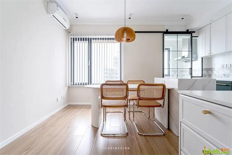 木質(zhì)的溫暖,杏子灰墻面的輕柔,巖板的整潔,以及搭配不同質(zhì)感的家具進(jìn)行融合。溫柔的色調(diào)和家具的質(zhì)感,塑造出更自然、舒適的用餐環(huán)境。日常一邊燒菜的同時,也可以跟家人交流,與最親密的人享受柴米油鹽帶來的樂室內(nèi)設(shè)計師趣。