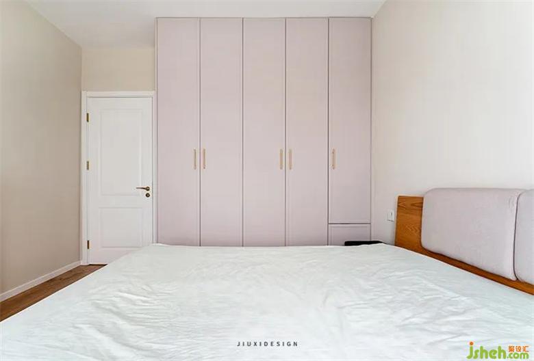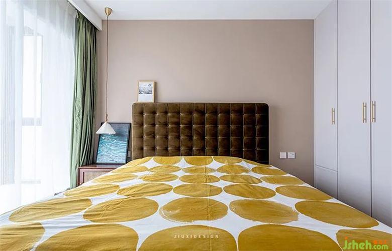 床頭和地板采用同色系,柜子和床頭軟包采用同色系。室內(nèi)設(shè)計師墻面是暖色的溫馨,床品是弱冷的素凈雅致。內(nèi)在相互聯(lián)系,相互呼應(yīng),連接成了一個整體,形成一種全放松的空間。