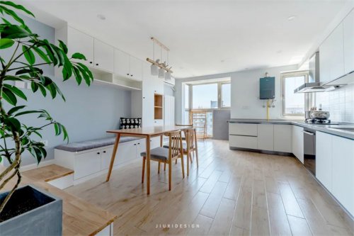 2.客廳和餐廳能夠貫穿更多收納,平時(shí)可以把餐桌收起來。