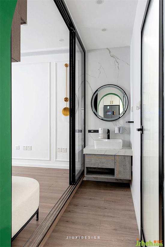 三分離最大的優(yōu)勢,在于家屬成員在如廁和洗漱,再也不會因?yàn)榕抨?duì)發(fā)生沖突,裝修設(shè)計統(tǒng)一頻段使用不會干擾到彼此。自帶背光燈的圓鏡,簡單還特別有意境,如一汪明月。三聯(lián)動推拉門邊框?qū)挾戎挥?cm,選用超白玻璃,讓室內(nèi)空間更加透亮。