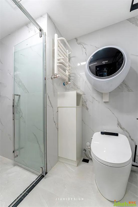 衛(wèi)生間空間有限,可以將壁掛洗衣機(jī)安裝到馬桶上方。裝修設(shè)計前提是必須做好線路布局,避免管線暴露出來亂糟糟。擁有一個完全獨(dú)立的淋浴間,寬敞的3㎡空間滿足各種體型使用。地面做了2cm下沉,省去丑丑的擋水條,簡潔大氣也好清理。
