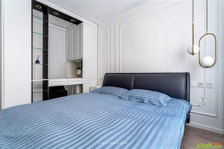 不對稱的床頭造型墻,裝修設(shè)計打破固有的單一性,還能釋放床體兩側(cè)過道的空間感。