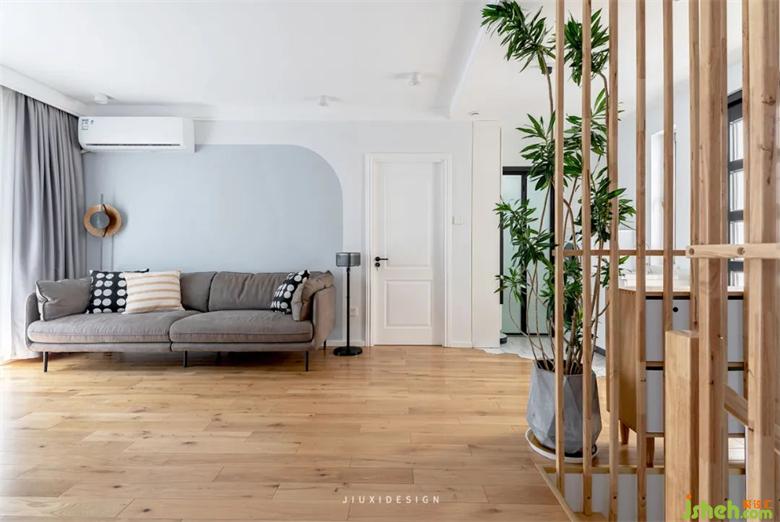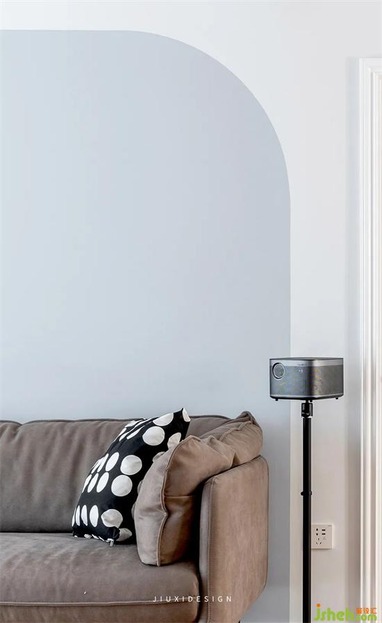 沙發(fā)背景墻的分色,做了弧度處理,室內(nèi)裝修讓空間更有層次和趣味性,家就該如此柔軟。