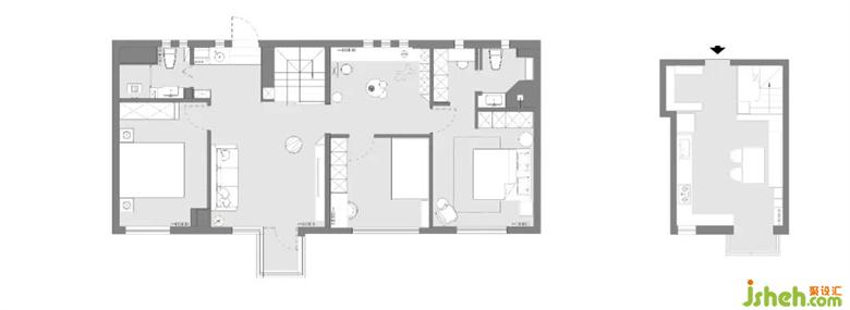本案項目地點位于北京朝陽,房子是上下兩層的LOFT頂層住宅。使用面積一共117㎡,主要常住是五口人,包括一對年輕夫婦+孩子+兩位父母。因為人數(shù)多,大家都對自己的房子有很多想法,女主人甚至已經(jīng)用三維軟件,做了很長時間的梳理,她迫切期待著可以將這所舊宅,晉升為三代人的理想新家。