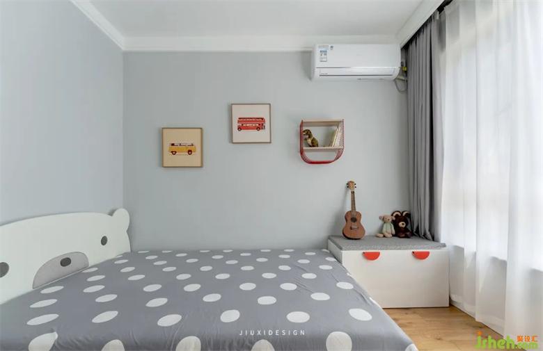 在大熊的床上入睡,也能夢回到童話世界。簡約可愛的掛畫和掛飾,尤克里里與大熊床達(dá)成默契,室內(nèi)裝修彰顯可愛天真的童趣,也為一場美夢提供優(yōu)秀的場景。