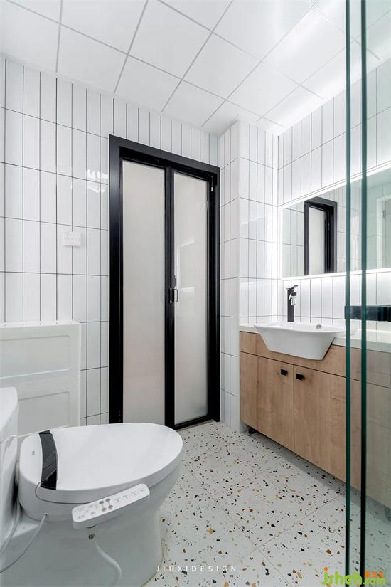 次衛(wèi)色彩搭配與主衛(wèi)一致,折疊門節(jié)省開啟占用的空間。